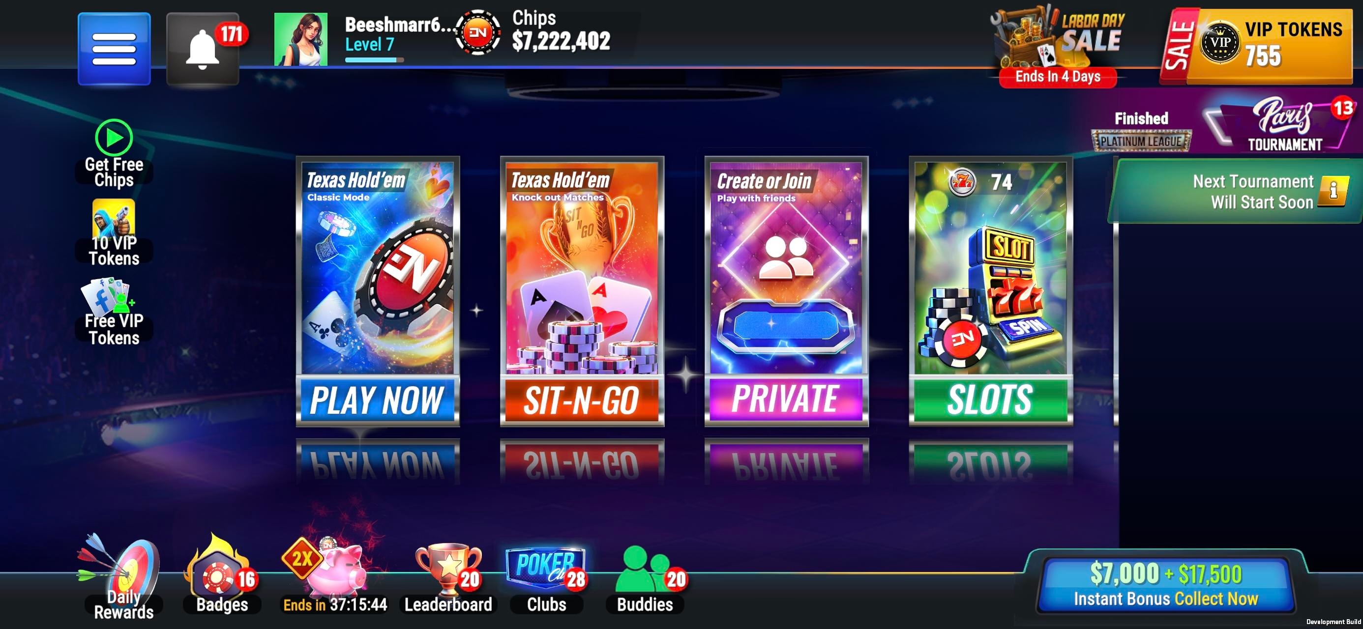 Players can participate in weekly league-based tournaments to climb the leaderboard and win millions of chips. Sit-N-Go mode provides fast-paced gameplay where the last player standing wins big. Players can also enjoy mini-games such as Slots and Spin-N-Win to boost their chip count.