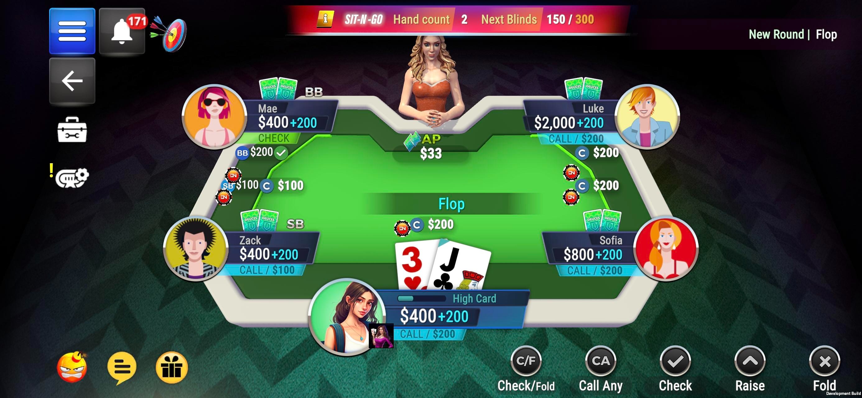 Sit-N-Go tournaments are fast-paced events with no predetermined start time. Every player begins with the same number of chips, and rebuys are not allowed. Blinds increase continuously, and the tournament lasts until only one player remains.